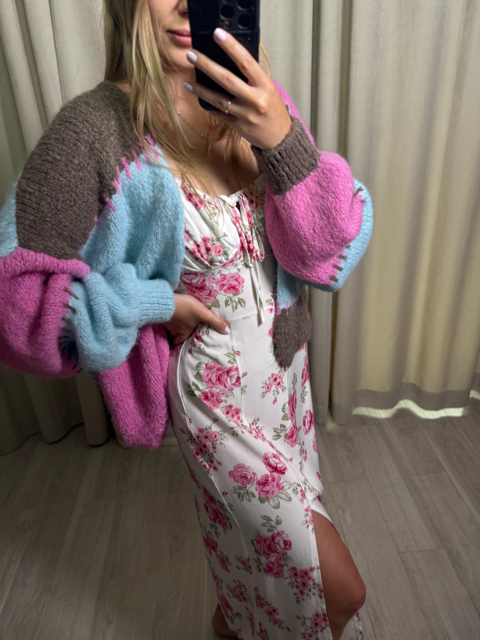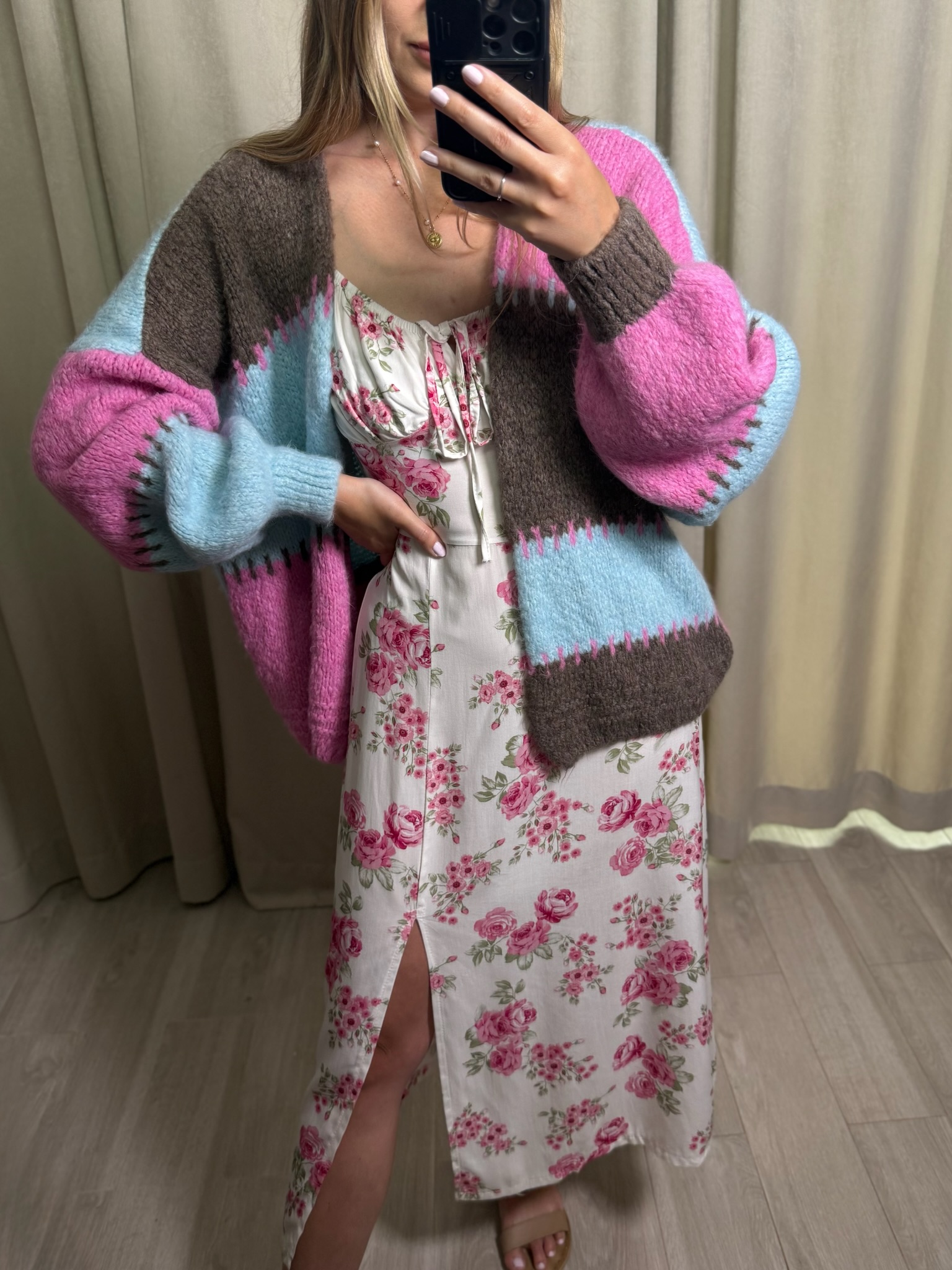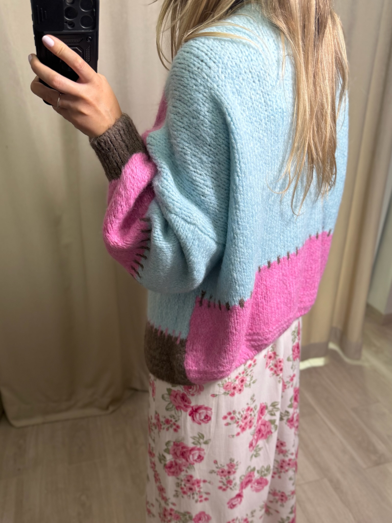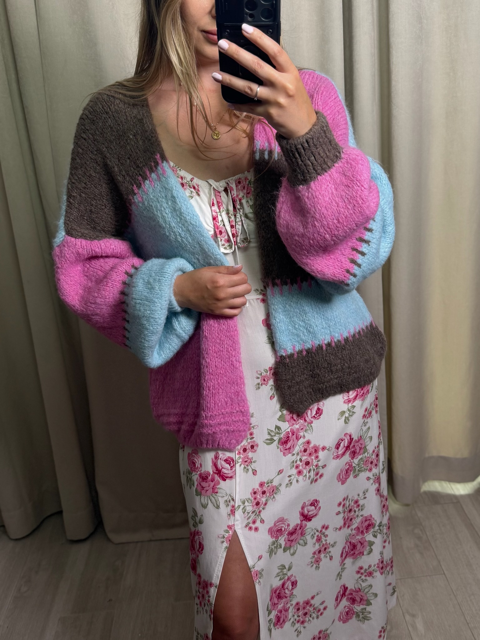 Kolorowy sweter bez zapięcia. Świetna narzutka na lato i jesień. Nieoczywiste połączenie kolorów sprawia, że jest wyjątkowy i będzie świetnym dopełnieniem każdej stylizacji, na sukienkę, na top, do jeansów. Uniwersalny i wygodny.